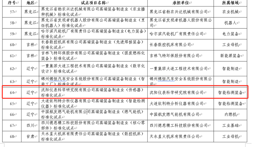 持续强化标准引领支撑,沈阳仪表院入围国家高端装备制造业标准化试点项目